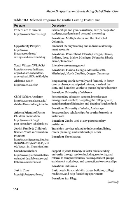 Full title = Macro Perspectives on Youths Aging Out of Foster Care. This design shows a common business book design which includes tables, boxes, glossary, and an index.