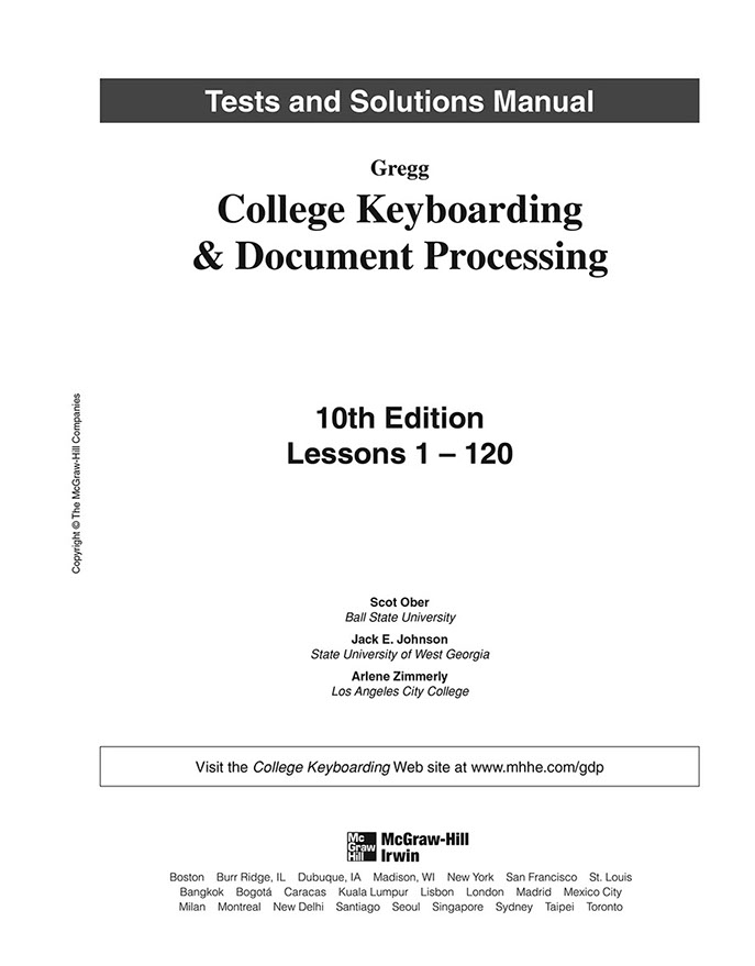 Lessons 1-120. Every college students favorite book. Learn the ways of the keyboard and typing. This is a highly rated series of books used in hundreds of colleges through out the world. It contains 120 lessons with test at the end of each section, training sections, and examples throughout.