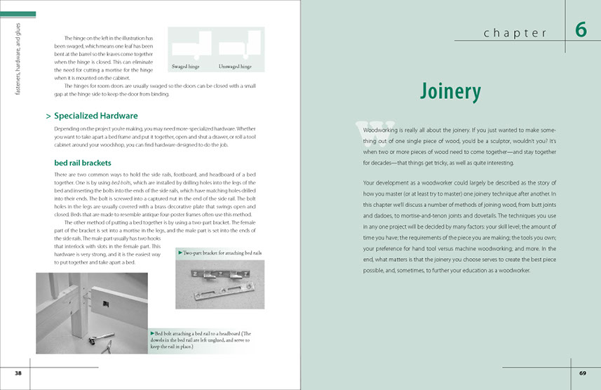 The first section of this book covers explanations of tools, materials, and techniques that will help you with the included projects and your own. The second half of the book contains step-by-step instructions on how to build select projects. The 4-color insert shows vivid images of the completed project and also has samples of different wood types.